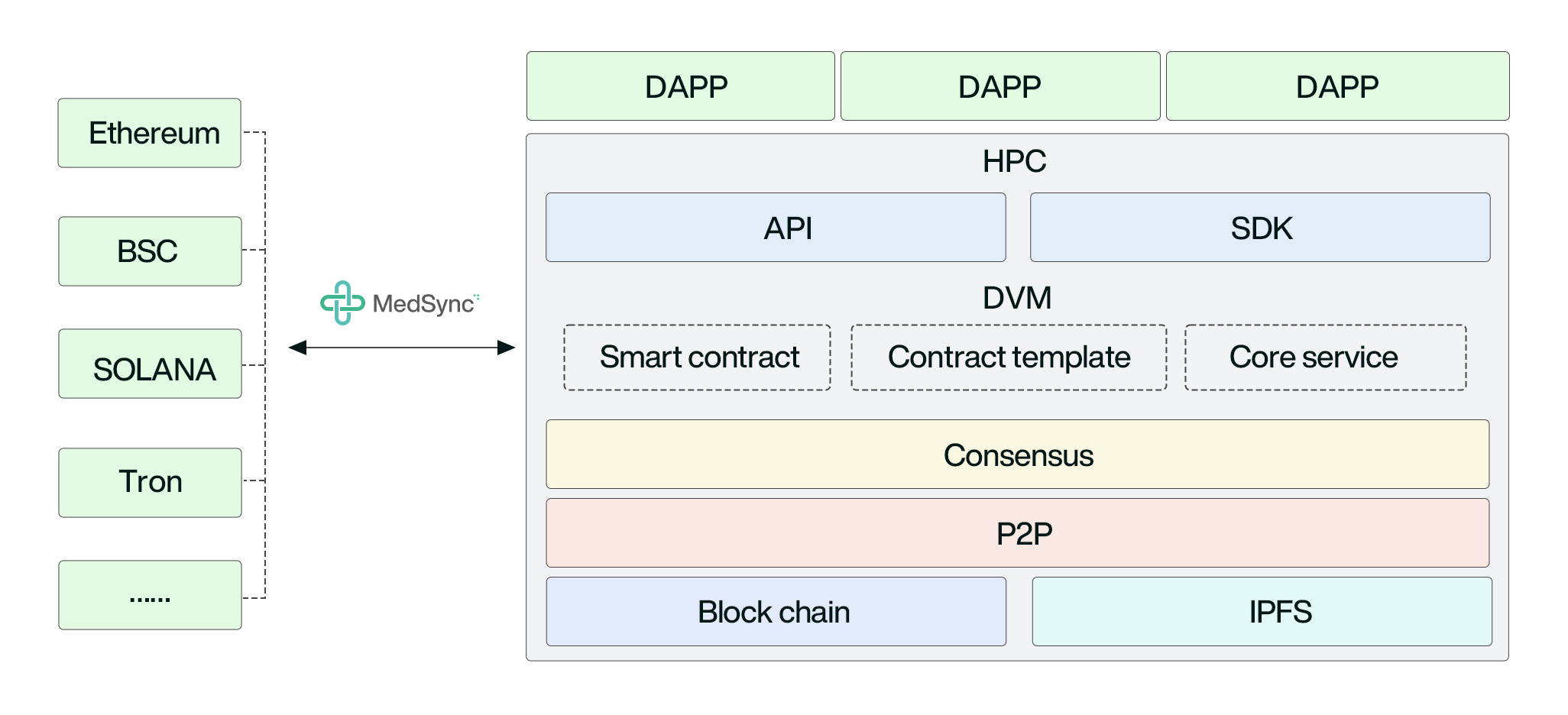 In summary, the MedSync platform’s three-layer architecture (Application, Service, Core) provides a robust foundation for a blockchain-based AI healthcare ecosystem. The Application Layer empowers users and third-party providers with ready-to-use apps and an open marketplace for innovation. The Service Layer offers developers a rich suite of tools and services to build on MedSync quickly and securely. The Core Layer delivers a secure blockchain infrastructure that safeguards data, automates trust through smart contracts, and ensures consensus across a global network of health stakeholders. This design positions MedSync as a scalable and secure solution for integrating blockchain technology and artificial intelligence into healthcare, ultimately enabling trusted data exchange, efficient collaboration, and new digital health services that benefit patients, providers, and researchers alike.